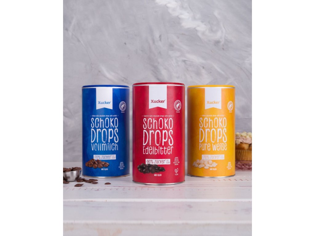 Whole milk Chocolate Drops are pieces of milk chocolate with no added sugar , sweetened only with xylitol. The chocolate pieces are ideal for baking cookies, muffins, cakes, making chocolate icing, homemade muesli, but they are also suitable for flavoring porridge or yogurt.